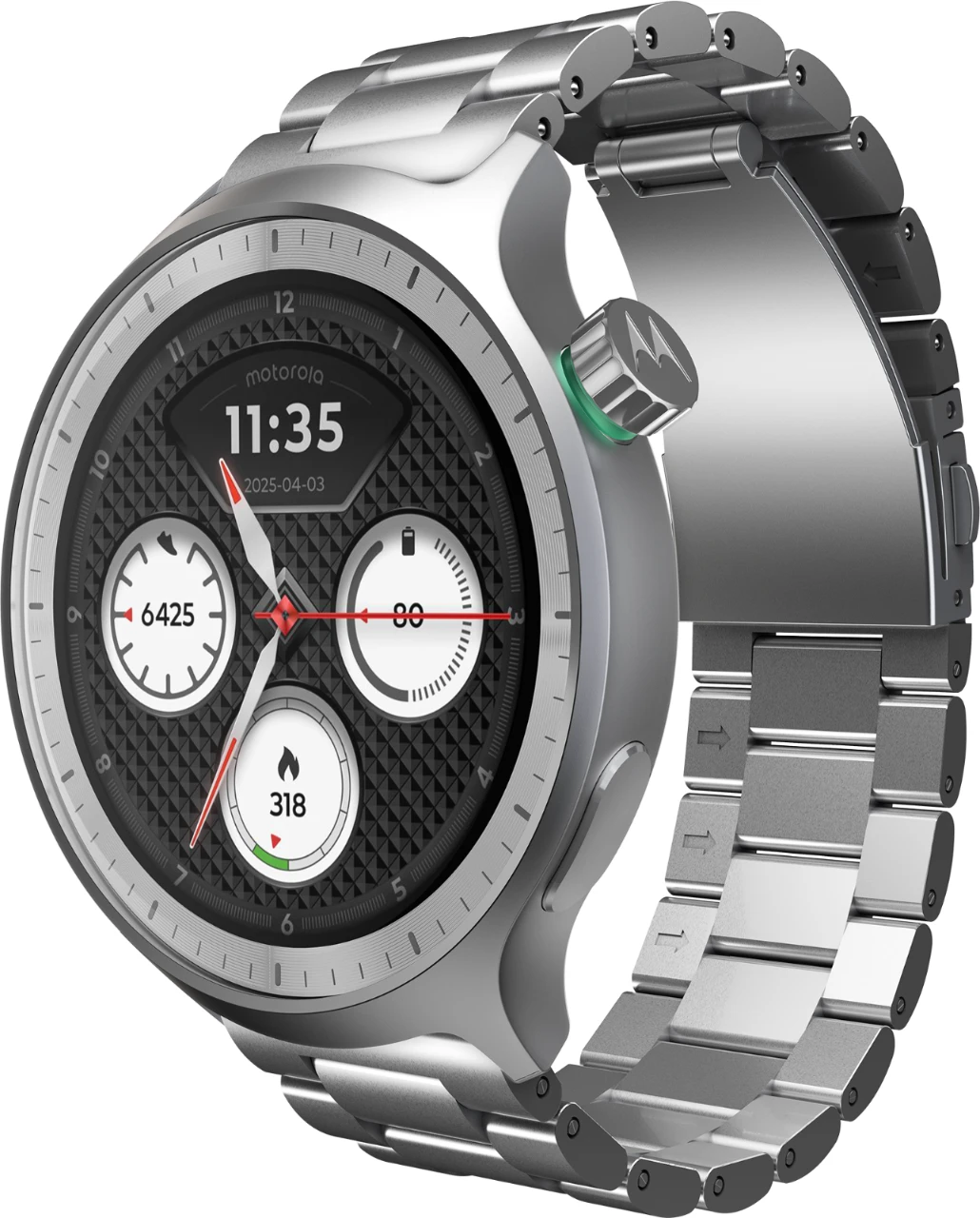 Wir präsentieren die neue moto watch – klassisch und doch sportlich mit einem eleganten, zeitlosen Design. Langlebig mit Corning Gorilla Glass 3 und Unterwasserschutz. Hol dir Aktivitäts- und Wellness-Tracking, entwickelt von Polar. Genieße bis zu 13 Tage ohne Aufladen. Nimm direkt von deinem Handgelenk Anrufe an und höre Benachrichtigungen. Und erlebe lebendige Schärfe mit dem 1,43-Zoll-OLED-Display, das mit verschiedenen Ziffernblättern angepasst werden kann. moto watch. Fit fürs Leben.